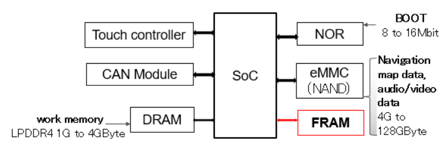 環(huán)境傳感器&攝像,車聯(lián)網通信技術和人工智能決策平臺是自動駕駛技術的核心技術。傳感器,CAN通信,infotainment這些系統(tǒng)需要實時和持續(xù)地存儲當前狀態(tài)信息,并進行實時分析和處理。因此需要提高存儲器的性能和耐久性設計,這些要求使FRAM成為理想的存儲選擇。