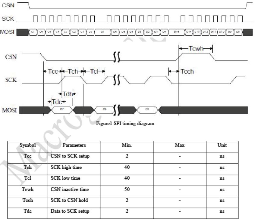其中MOSI 信號用于輸入和輸出。MCU 可以用3 個GPIO 模擬SPI,我們提供3 線SPI 的參考C 源碼。