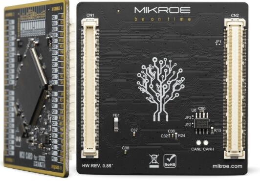 MCU卡是標(biāo)準(zhǔn)化的附加板,可以非常簡(jiǎn)單地在配有MCU卡插槽的開發(fā)板上安裝和更換MCU。通過引入新的單片機(jī)卡標(biāo)準(zhǔn),我們確保了開發(fā)板與任何受支持的MCU之間的絕對(duì)兼容性,無論其引腳號(hào)和兼容性如何。MCU卡配備了兩個(gè)168針夾層連接器,從而使它們甚至可以支持具有極高引腳數(shù)的MCU。遵循Clickboard™產(chǎn)品線公認(rèn)的即插即用概念,其巧妙的設(shè)計(jì)允許非常簡(jiǎn)單的使用。