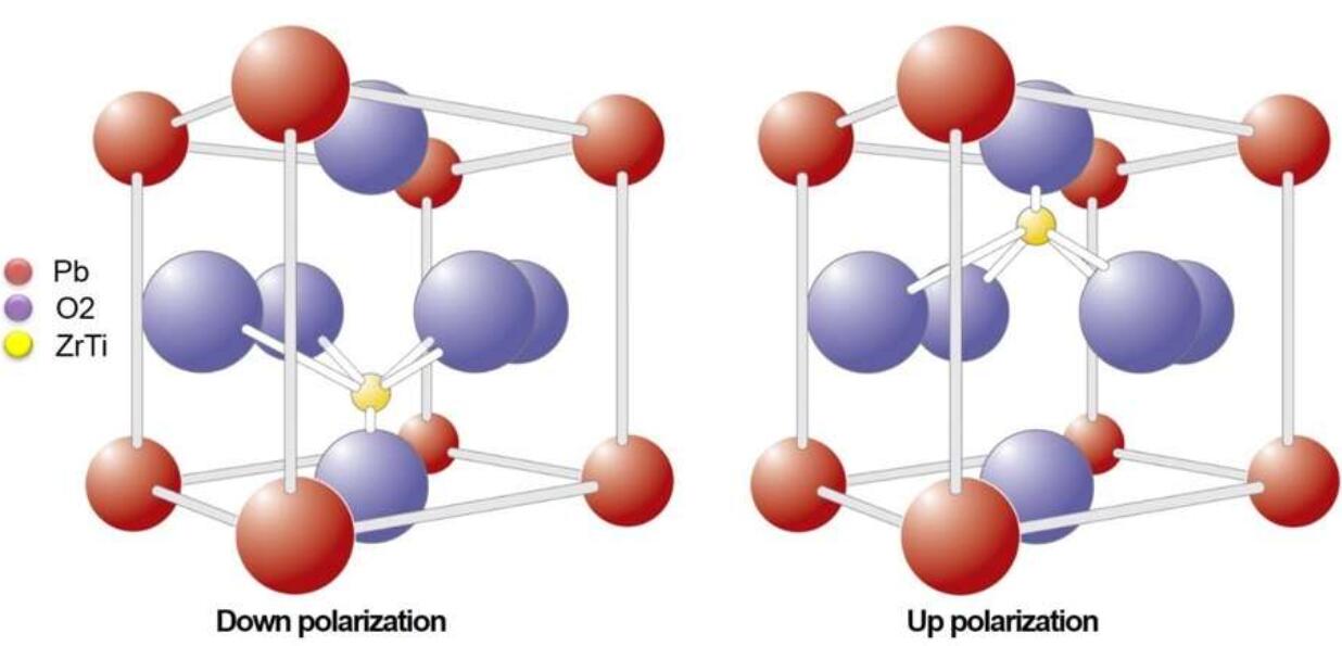 這些吸引人的特性是鋯鈦酸鉛(PZT)是其中一種材料的鐵電性能的結(jié)果。PZT具有鈣鈦礦晶體結(jié)構(gòu),中心有一個(gè)陽(yáng)離子(見(jiàn)圖1)。該陽(yáng)離子可以處于兩個(gè)位置之一,并且可以通過(guò)施加電場(chǎng)來(lái)切換位置。每個(gè)轉(zhuǎn)換都會(huì)產(chǎn)生“開(kāi)關(guān)電荷”(Q s),可以將其讀取以表示邏輯1或0。